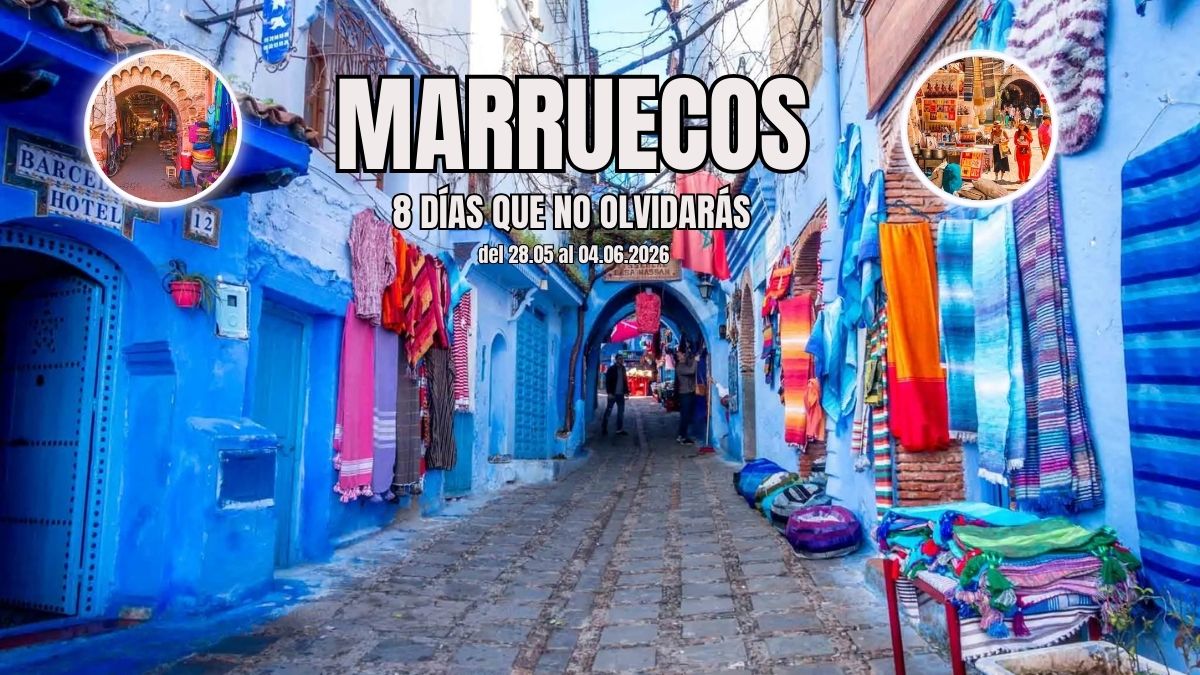 😃 8 días - del 28.05 al 04.06.2026 - 🚀 Vuelo directo desde Barcelona Marruecos no se visita, se siente. 🌙✨Un viaje donde el alma se aquieta entre el murmullo de los zocos, la luz dorada sobre las murallas de Marrakech y la energía vibrante de las Ciudades Imperiales. Aquí el tiempo se desacelera… y cada paso es una invitación a sentir Marruecos […]